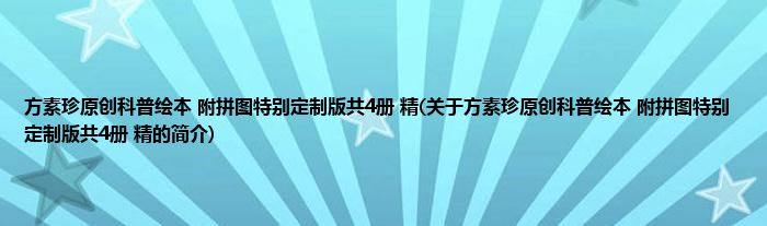 大家好,方素珍原创科普绘本 附拼图特别定制版共4册 精,关于方素珍原创科普绘本 附拼图特别定制版共4册 精的简介很多人还不知道,现在让我们一起来看看吧!