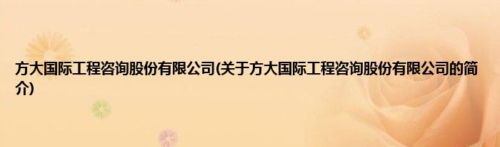 大家好,方大国际工程咨询股份有限公司,关于方大国际工程咨询股份有限公司的简介很多人还不知道,现在让我们一起来看看吧!