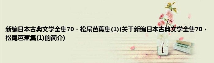 本文关于新编日本古典文学全集70・松尾芭蕉集(1)的简介就讲解完毕,希望对大家有所帮助。
