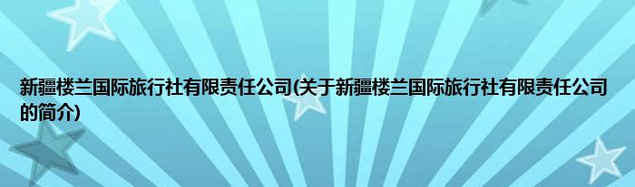 本文关于新疆楼兰国际旅行社有限责任公司的简介就讲解完毕,希望对大家有所帮助。