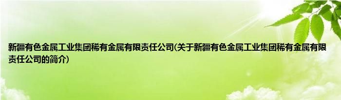 本文关于新疆有色金属工业集团稀有金属有限责任公司的简介就讲解完毕,希望对大家有所帮助。