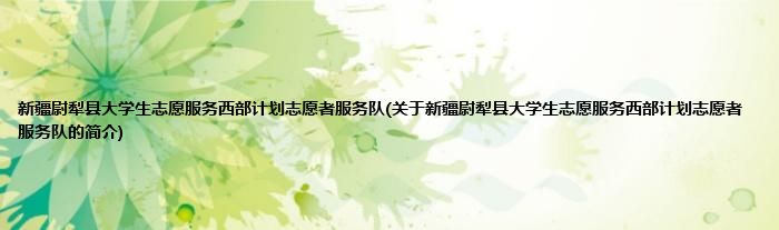 1、 新疆尉犁县大学生志愿服务西部计划志愿者服务队,是新疆尉犁县志愿者服务队。