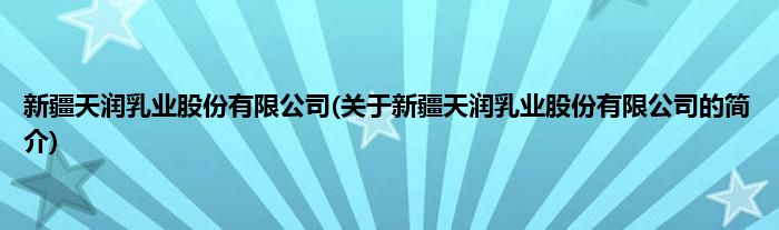 本文关于新疆天润乳业股份有限公司的简介就讲解完毕,希望对大家有所帮助。