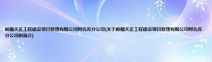 大家好,新疆天正工程建设项目管理有限公司阿克苏分公司,关于新疆天正工程建设项目管理有限公司阿克苏分公司的简介很多人还不知道,现在让我们一起来看看吧!