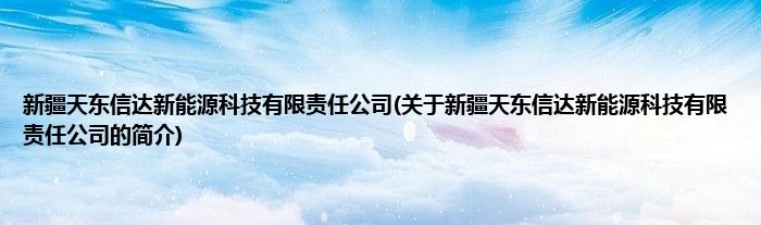 大家好,新疆天东信达新能源科技有限责任公司,关于新疆天东信达新能源科技有限责任公司的简介很多人还不知道,现在让我们一起来看看吧!