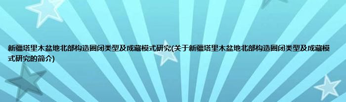 本文关于新疆塔里木盆地北部构造圈闭类型及成藏模式研究的简介就讲解完毕,希望对大家有所帮助。