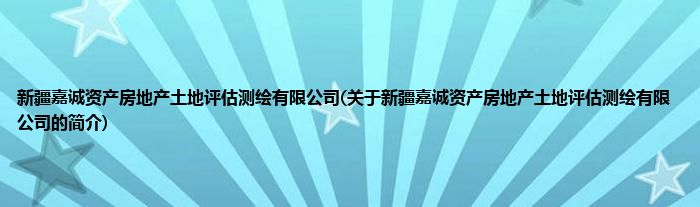 本文关于新疆嘉诚资产房地产土地评估测绘有限公司的简介就讲解完毕,希望对大家有所帮助。