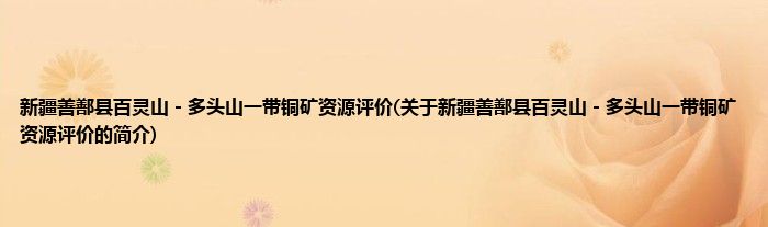 大家好,新疆善鄯县百灵山-多头山一带铜矿资源评价,关于新疆善鄯县百灵山-多头山一带铜矿资源评价的简介很多人还不知道,现在让我们一起来看看吧!