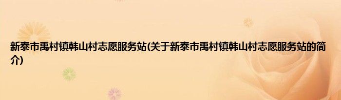 本文关于新泰市禹村镇韩山村志愿服务站的简介就讲解完毕,希望对大家有所帮助。