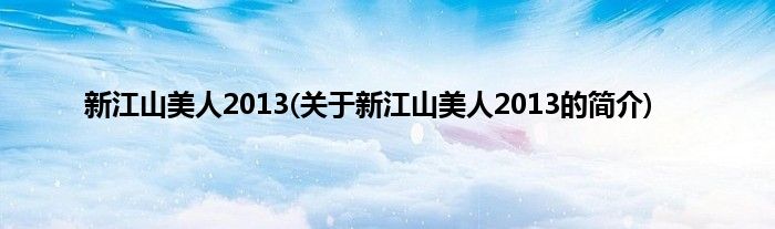 新江山美人2013(关于新江山美人2013的简介)