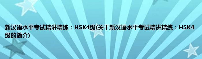 本文关于新汉语水平考试精讲精练:HSK4级的简介就讲解完毕,希望对大家有所帮助。