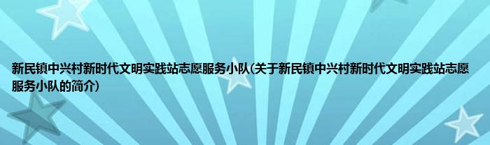 本文关于新民镇中兴村新时代文明实践站志愿服务小队的简介就讲解完毕,希望对大家有所帮助。