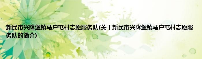 本文关于新民市兴隆堡镇马户屯村志愿服务队的简介就讲解完毕,希望对大家有所帮助。