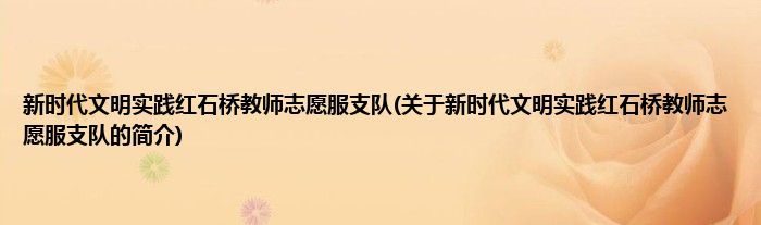 本文关于新时代文明实践红石桥教师志愿服支队的简介就讲解完毕,希望对大家有所帮助。