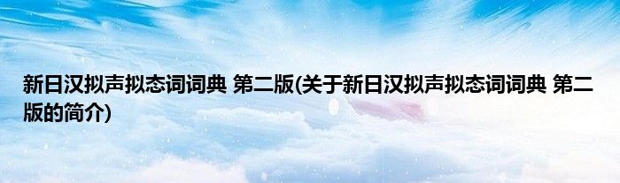 本文关于新日汉拟声拟态词词典 第二版的简介就讲解完毕,希望对大家有所帮助。