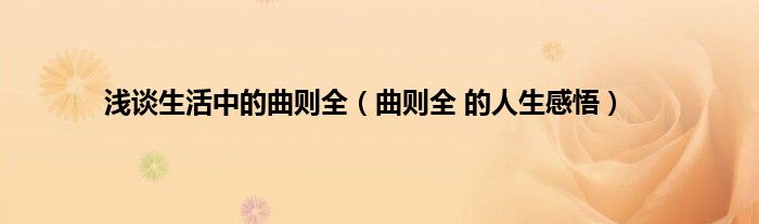 大家好,小问来为大家解答以上问题。浅谈生活中的曲则全,曲则全 的人生感悟这个很多人还不知道,现在让我们一起来看看吧!