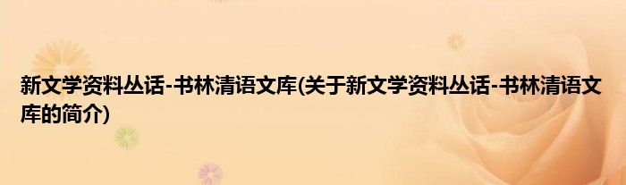 本文关于新文学资料丛话-书林清语文库的简介就讲解完毕,希望对大家有所帮助。