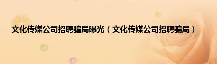 以上就是【文化传媒公司招聘骗局曝光,文化传媒公司招聘骗局】相关内容。