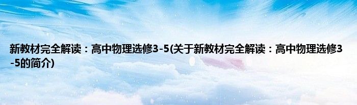 最佳答案大家好,新教材完全解读:高中物理选修3-5,关于新教材完全解读:高中物理选修3-5的简介很多人还不知道,现在让我们一起来看看吧! 1、 《新教材完全解读:高中物理选修3-5(新课标·人教版)(金版)》内容全,将教材、教参、练习册融为一体,并且内容含量多出40%;《新教材完全解读:高中物理选修3-5(新...