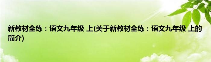 1、 《新教材全练:语文九年级(上)》是2014年上海大学出版社出版的图书。