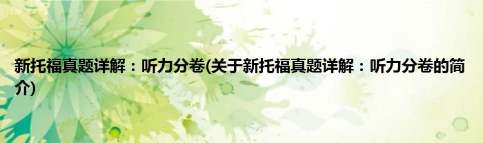 大家好,新托福真题详解:听力分卷,关于新托福真题详解:听力分卷的简介很多人还不知道,现在让我们一起来看看吧!