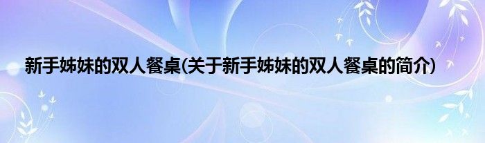 大家好,新手姊妹的双人餐桌,关于新手姊妹的双人餐桌的简介很多人还不知道,现在让我们一起来看看吧!