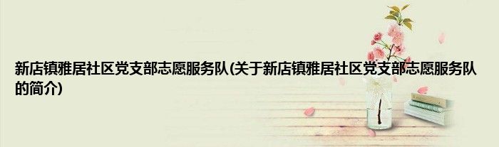 大家好,新店镇雅居社区党支部志愿服务队,关于新店镇雅居社区党支部志愿服务队的简介很多人还不知道,现在让我们一起来看看吧!
