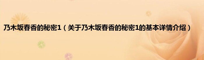 本文关于乃木坂春香的秘密1的基本详情介绍就讲解完毕,希望对大家有所帮助。
