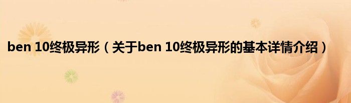 本文关于ben 10终极异形的基本详情介绍就讲解完毕,希望对大家有所帮助。