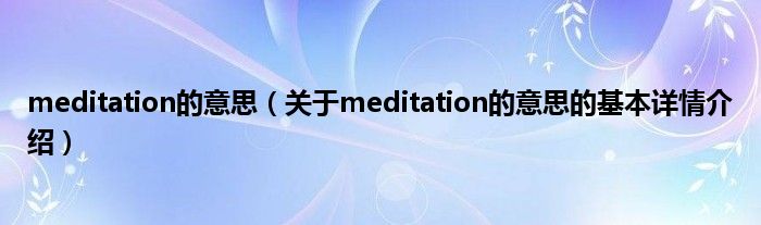 本文关于meditation的意思的基本详情介绍就讲解完毕,希望对大家有所帮助。