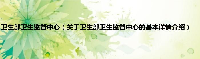 本文关于卫生部卫生监督中心的基本详情介绍就讲解完毕,希望对大家有所帮助。