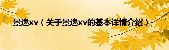 大家好我是小蝌蚪,景逸xv,关于景逸xv的基本详情介绍很多人还不知道,那么现在让我们一起来看看吧!