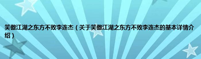 本文关于笑傲江湖之东方不败李连杰的基本详情介绍就讲解完毕,希望对大家有所帮助。