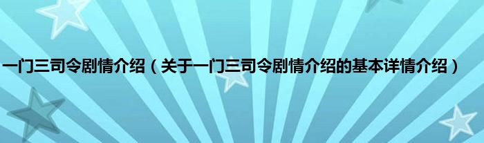 本文关于一门三司令剧情介绍的基本详情介绍就讲解完毕,希望对大家有所帮助。