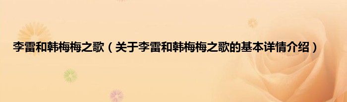 本文关于李雷和韩梅梅之歌的基本详情介绍就讲解完毕,希望对大家有所帮助。