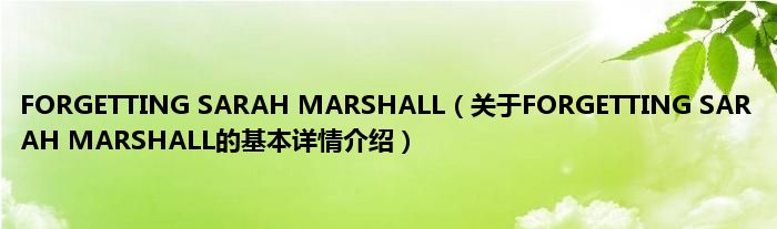 本文关于FORGETTING SARAH MARSHALL的基本详情介绍就讲解完毕,希望对大家有所帮助。