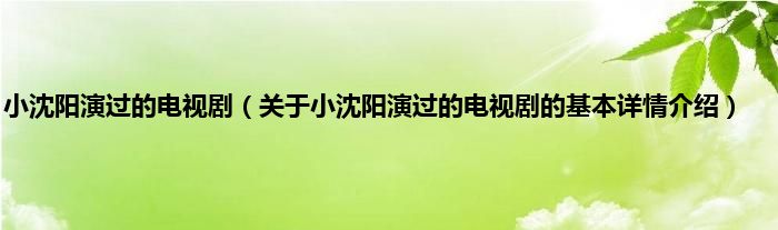 本文关于小沈阳演过的电视剧的基本详情介绍就讲解完毕,希望对大家有所帮助。