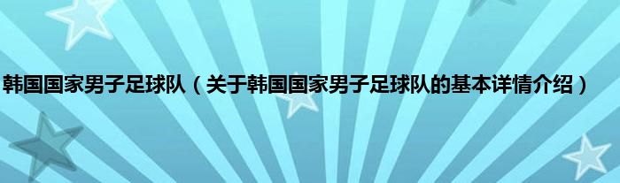 本文关于韩国国家男子足球队的基本详情介绍就讲解完毕,希望对大家有所帮助。