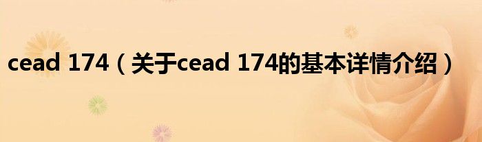本文关于cead 174的基本详情介绍就讲解完毕,希望对大家有所帮助。