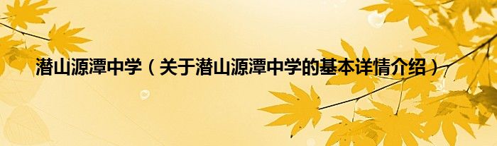 本文关于潜山源潭中学的基本详情介绍就讲解完毕,希望对大家有所帮助。