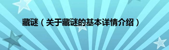 本文关于藏谜的基本详情介绍就讲解完毕,希望对大家有所帮助。