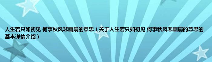 本文关于人生若只如初见 何事秋风悲画扇的意思的基本详情介绍就讲解完毕,希望对大家有所帮助。