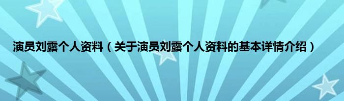 本文关于演员刘露个人资料的基本详情介绍就讲解完毕,希望对大家有所帮助。