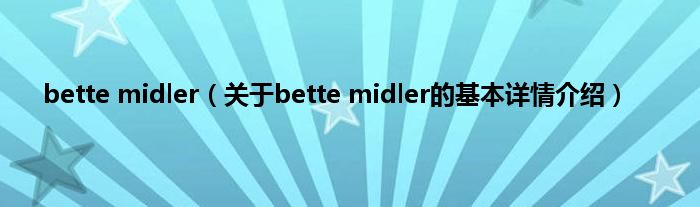 本文关于bette midler的基本详情介绍就讲解完毕,希望对大家有所帮助。