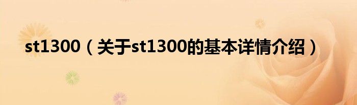 本文关于st1300的基本详情介绍就讲解完毕,希望对大家有所帮助。