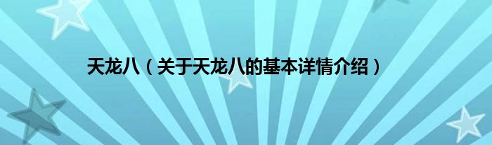 大家好我是小蝌蚪,天龙八,关于天龙八的基本详情介绍很多人还不知道,那么现在让我们一起来看看吧!