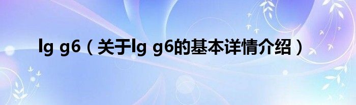本文关于lg g6的基本详情介绍就讲解完毕,希望对大家有所帮助。