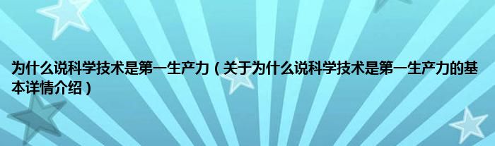 大家好我是小蝌蚪,为什么说科学技术是第一生产力,关于为什么说科学技术是第一生产力的基本详情介绍很多人还不知道,那么现在让我们一起来看看吧!