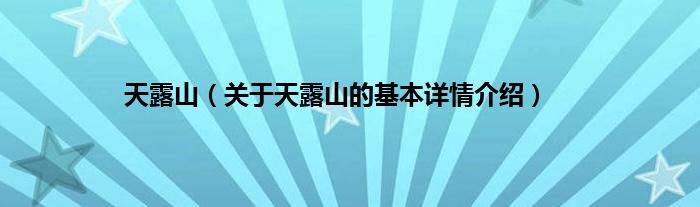 本文关于天露山的基本详情介绍就讲解完毕,希望对大家有所帮助。