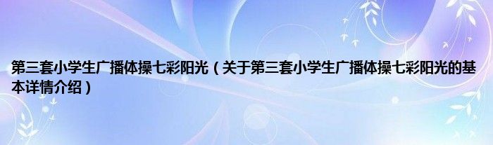 第三套小学生广播体操七彩阳光(关于第三套小学生广播体操七彩阳光的基本详情介绍)